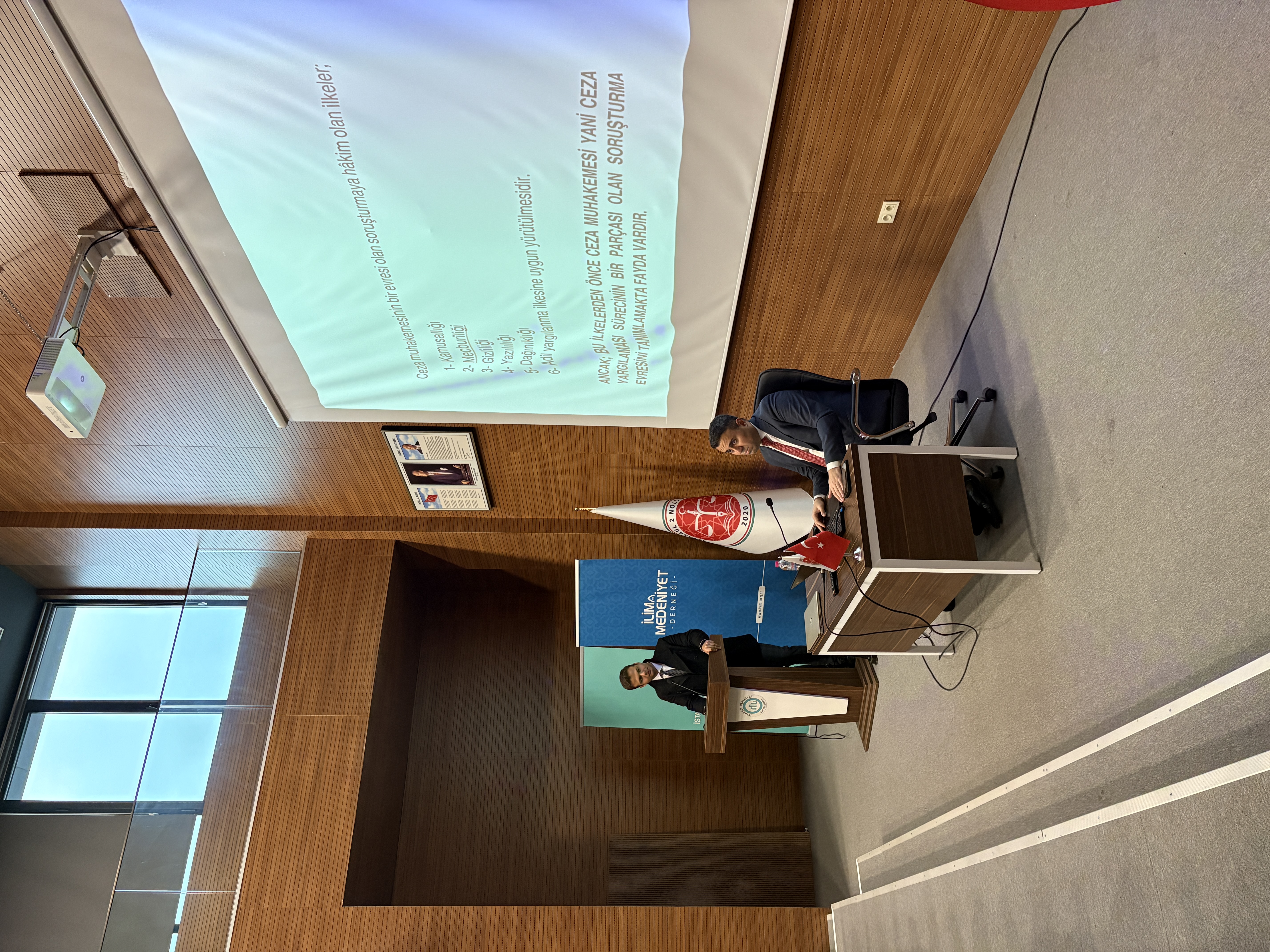 Programın ikinci oturumu, Cumhuriyet Savcısı Uğur Yıldırım’ın sunumuyla gerçekleştirildi. Yıldırım, “Soruşturmaya Hakim Olan İlkeler” başlıklı sunumunda ceza soruşturmasının temel esaslarını, delil toplama süreçlerini ve adil yargılanma hakkı çerçevesinde savcılığın rolünü ele aldı. Katılımcılar, soruşturma sürecine ilişkin teorik ve pratik bilgilerin aktarıldığı verimli bir oturum geçirdi. Program, soru-cevap bölümünün ardından yine Eren Güleken tarafından yapılan hediye takdimiyle sona erdi.