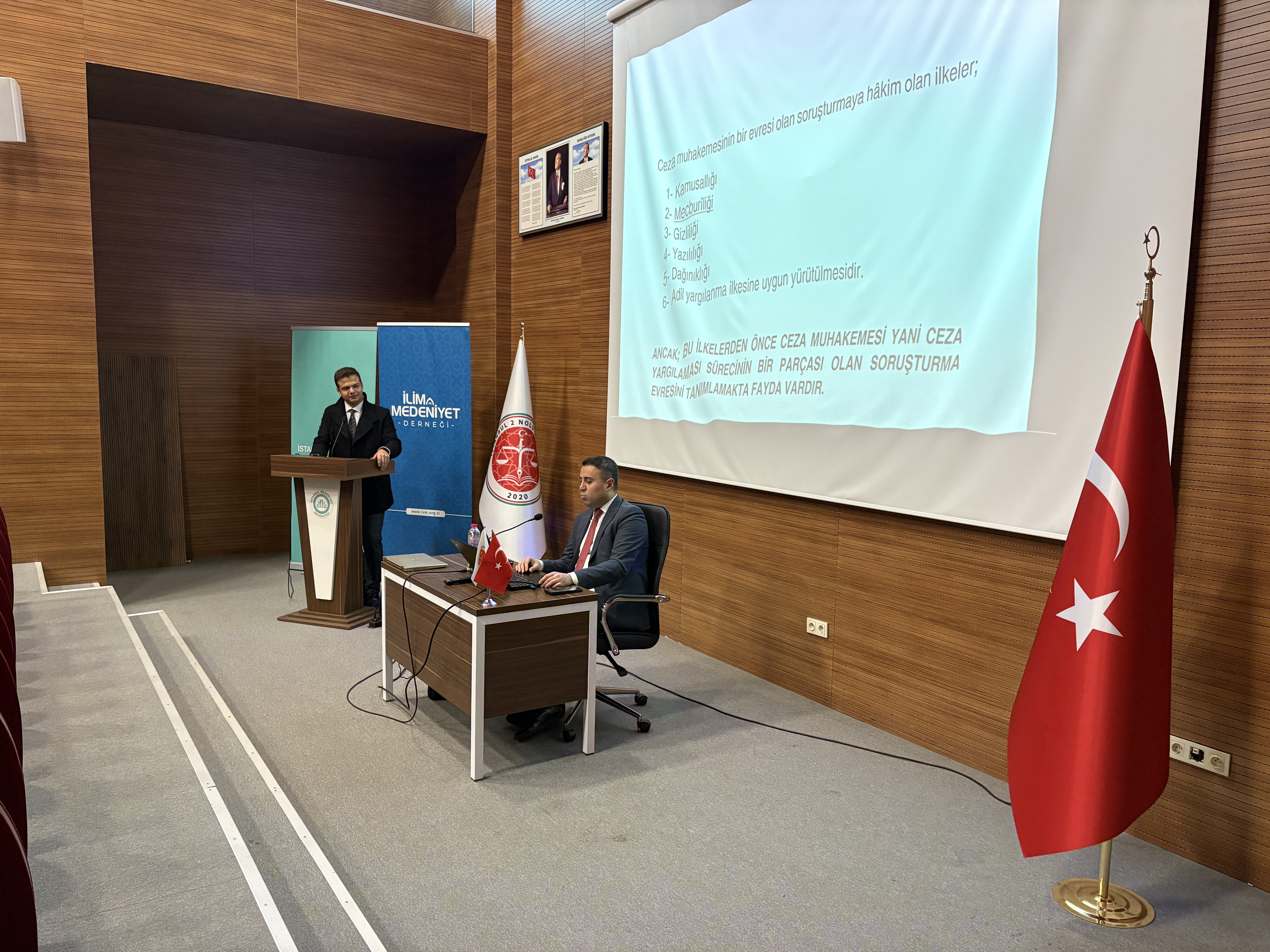 Programın ikinci oturumu, Cumhuriyet Savcısı Uğur Yıldırım’ın sunumuyla gerçekleştirildi. Yıldırım, “Soruşturmaya Hakim Olan İlkeler” başlıklı sunumunda ceza soruşturmasının temel esaslarını, delil toplama süreçlerini ve adil yargılanma hakkı çerçevesinde savcılığın rolünü ele aldı. Katılımcılar, soruşturma sürecine ilişkin teorik ve pratik bilgilerin aktarıldığı verimli bir oturum geçirdi. Program, soru-cevap bölümünün ardından yine Eren Güleken tarafından yapılan hediye takdimiyle sona erdi.